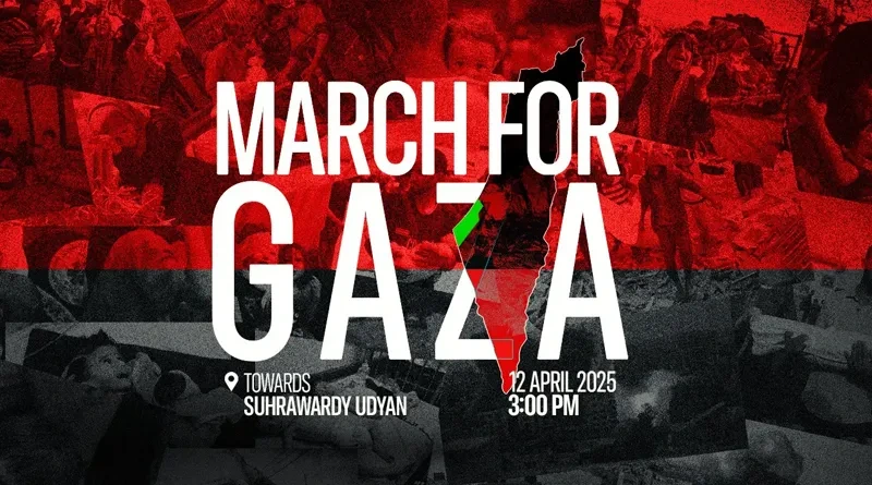 Therefore, on April 12, 2025, the “March for Gaza” at Suhrawardy Udyan, inshaAllah, will be a call to wake up the Muslims of our region, a declaration of unity with the believers across the Muslim world, a commitment to stand with the oppressed Muslims at all times, and a heartfelt readiness to engage whatever necessary against the barbaric Jewish nation. Above all, after Dhaka’s there will be a collective dua to Allah, the Lord of the Worlds — and that is essential to accompany any righteous action. For nothing will bear fruit without His help!